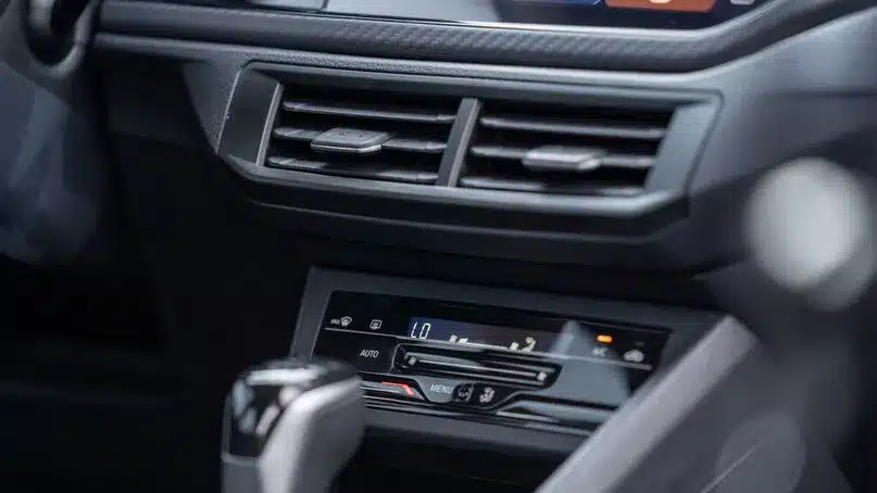 El Sistema Automático Climatronic de Volkswagen Nivus regula la temperatura en su interior basándose en el ajuste de temperatura escogido, ajustando la velocidad del ventilador y accionando automáticamente las aletas de distribución de aire.